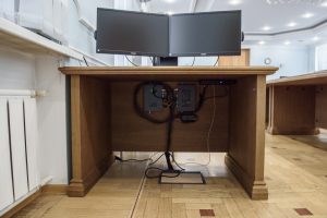 Для оснащения переговорной зоны Пенсионного фонда мы спроектировали и изготовили представительский стол на 22 персоны. Модель выполнена в формате овала с мягко закруглёнными углами — такая геометрия обеспечивает комфортную рассадку и беспрепятственную визуальную коммуникацию. Массив светлого дерева подчеркивает статусность пространства, а лаконичная обработка поверхности сохраняет естественную текстуру материала. В центре стола предусмотрена техническая ниша для организации проводки и удобного размещения оборудования, что позволило сохранить безупречный внешний вид без выступающих кабелей. Конструкция рассчитана на длительную эксплуатацию в условиях высокой нагрузки: усиленный каркас и надёжное покрытие гарантируют устойчивость к износу.