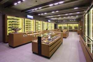Для оружейного магазина площадью от 200 м² мы разработали стеклянные витрины, которые сочетают элегантный дизайн с полным соответствием требованиям безопасности. Вертикальные модели с подсветкой размещаются вдоль стен и предназначены для длинноствольного и габаритного холодного оружия. Горизонтальные витрины устанавливаются в центре зала, обеспечивая круговой обзор пистолетов, боеприпасов, оптики и ножей. Дополнительные открытые шкафы с регулируемыми полками вмещают аксессуары, арбалеты, луки и комплектующие. Все решения продуманы для удобства покупателей и эффективной презентации товара.