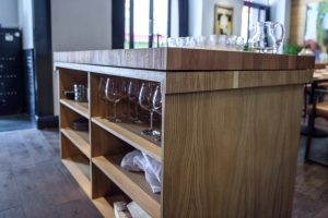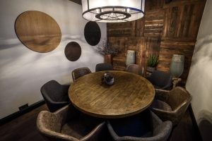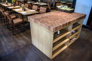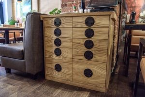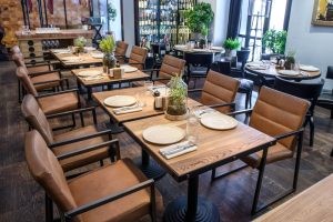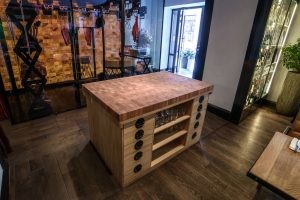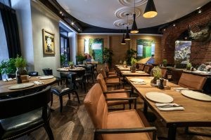 Для этого проекта мы разработали и изготовили мебель, которая органично дополнила брутальную архитектуру ресторана. Вдохновляясь принципами супрематизма, заложенными в интерьере, мы использовали простые геометрические формы и благородные материалы: натуральное дерево и черный глянцевый металл. Наша мебель не конкурирует с исторической кирпичной кладкой и сводами Монье, а становится их элегантным продолжением, подчеркивая камерность и характер пространства. Каждый предмет — от столов до стульев — спроектирован так, чтобы выдерживать интенсивную нагрузку мясного ресторана, сохраняя при этом безупречный внешний вид и атмосферу “архитектурного” комфорта.
